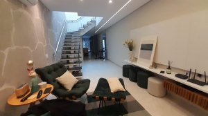 IMÓVEL DE AUTO PADRÃO com 2 anos de uso, revestimento quartzito, ar condicionado (sala - suíte 1 e 3, cozinha e área gourmet), vidro retrátil motorizado na are gourmet, piso frio na porte inferior e na superior madeira, planejados em todos os cômodos, espelhos, guarda corpo em vidro. 160 M²